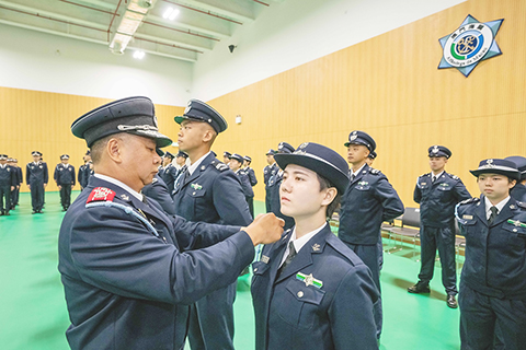 隨後,李煜輝、助理關長葉華釗及吳嘉慧為新入職關員佩戴肩章,並向是次培訓課程獲得總成績優異獎的林思庄頒發了獎項。就職儀式結束後,畢業學員隨即被分派至海關各單位執勤,正式履行職責。◇