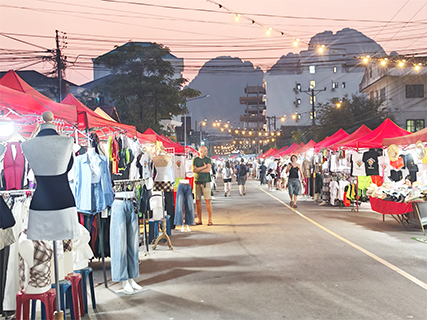 湖邊園門兩旁,沙地上是熱鬧的攤販市集,果汁攤檔遊人擁擠,花上老撾基普五萬(約合澳門幣十八元),便能品嘗一杯新鮮現榨的牛油果汁,清甜爽口,滿是自然滋味。小食攤上售賣着當地特色山珍:棕櫚蟲、烤鼠、蝙蝠等野味,風味獨特,不過也讓部分人望而卻步。