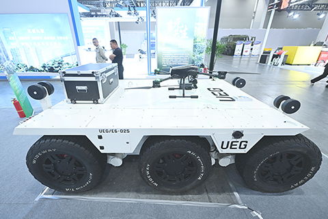 ◎ 四月十七日,浙江杭州,防災減災安全應急博覽會展出的用於應急救援等場景的無人車、無人機吸引參觀者。該博覽會是「2026防災減災大會」的配套活動,集中展示科技賦能防災減災的最新成果,吸引民眾參觀了解。(中新社記者 王剛 攝)