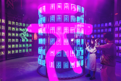◎ 四月二十一日,天津博物館,觀眾在甲骨文沉浸式互動體驗數字展拍照。當日,天津博物館首個全沉浸式數字主題展「契刻流光──甲骨文沉浸式互動體驗數字大展」啟幕。展覽以天津博物館館藏珍貴甲骨文物為核心載體,通過全場景沉浸式數字技術、多維度互動體驗,讓沉睡三千餘年的甲骨文字「活」起來,為觀眾打造一場跨越時空的中華古文字文明盛宴。(中新社記者 佟郁 攝)