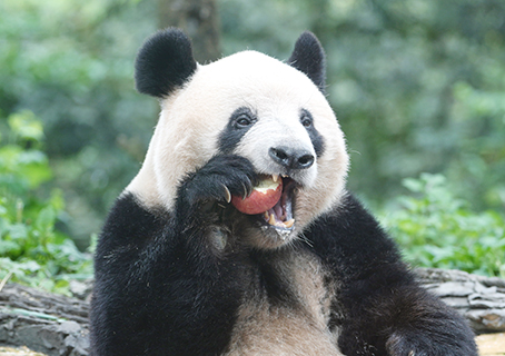 上午9時許,大熊貓「香香」悠然現身,踱步至圈舍中間平台,準備享用早餐。牠從竹笋與翠竹旁路過,優先選中最愛的蘋果,握在掌中細品慢嚼,憨態盡顯。可愛的一幕讓十餘位早早等候在此的日本「粉絲」輕聲讚嘆,並不斷按下快門,珍藏「香香」的萌趣瞬間。這是近日中新社記者專程探訪中國大熊貓保護研究中心雅安基地時所見的一幕。
