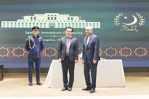 四月二十六日晚,巴基斯坦總統扎爾達里在湖南長沙為中國醫學科學院阜外醫院副院長潘湘斌授予「巴基斯坦之星」榮譽勳章,以表彰其在援助巴基斯坦醫療方面做出的傑出貢獻。◇(中新社)