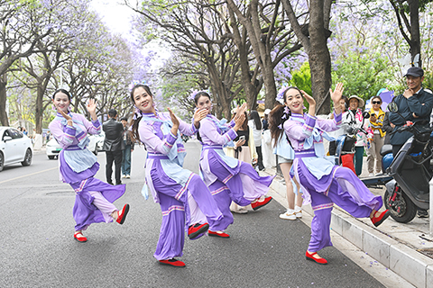 黑龍江上「跑冰排」 船的故事--海事文化主題展 從「閱讀」到「閱己」 京城書市現淘書新風尚 中國全面推廣離境退稅「即買即退」一周年 辦理者同比增近十三倍 中國首次實現批量克隆10頭牦牛 遙控泰女吹風機藏毒闖關遭識破 花蓮夫婦被警循線逮捕 中國美麗河湖建成率 到二零三零年達六成五 快閃展示彝族傳統歌舞 2026-04-29 03:30:00 ◎ 四月廿八日,石林彝族歌舞表演團隊走上雲南省昆明市街頭,以快閃的形式展示彝族的傳統歌舞、服飾和民俗文化,展現石林文旅魅力。圖為演員在街頭上演彝族歌舞。(中新社記者李嘉嫻 攝)
